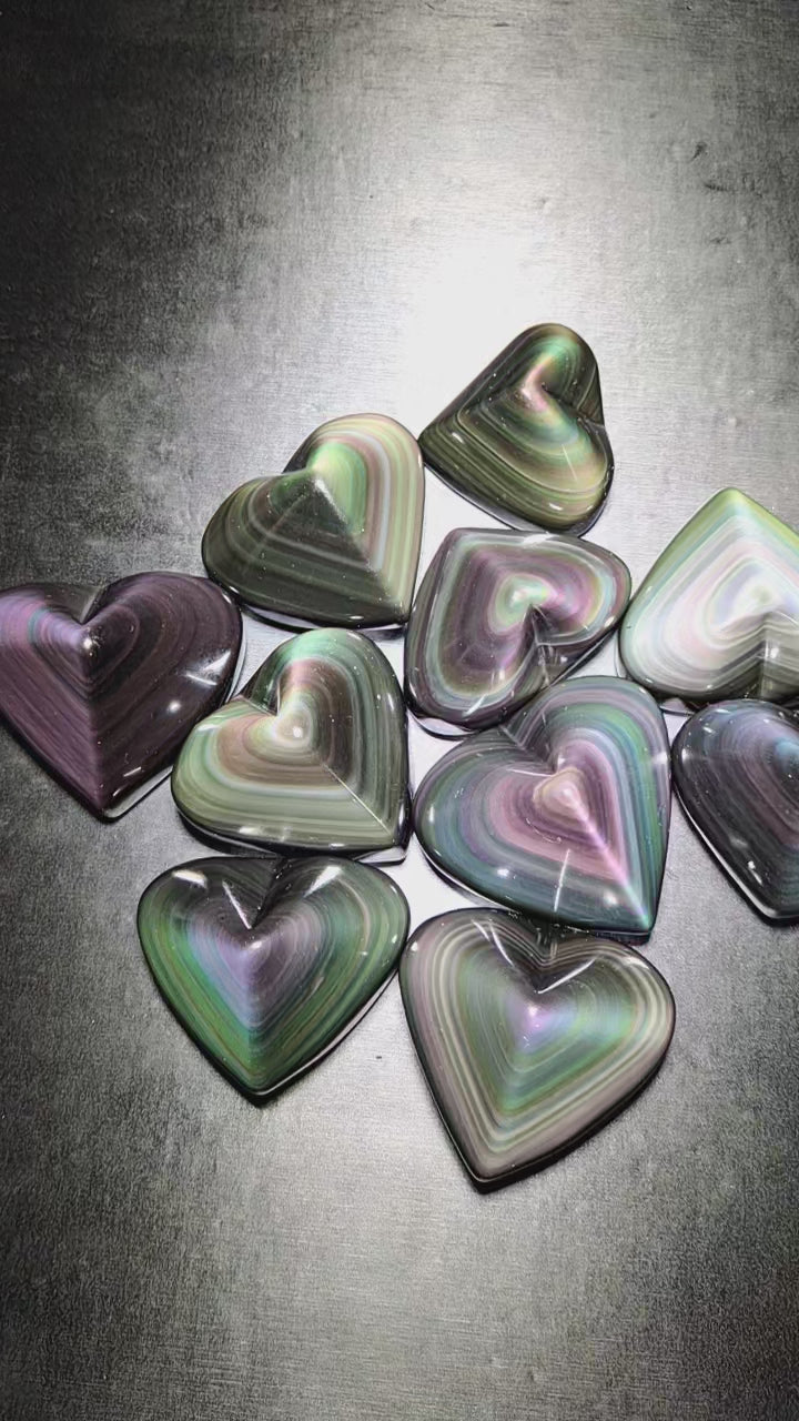 Rainbow obsidian hearts